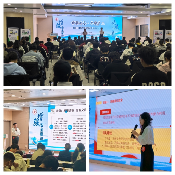 第十一届“护航青春·平安广工”校园安全知识暨创意设计大赛于近日圆满结束。大赛分为校园安全主题演讲比赛、校园安全视频创作比赛两个赛道进行。自通知发布以来,大赛受到全校广泛关注与期待,师生踊跃参与。同学们从不同维度切入校园生活,以创新的叙事和多元的表现形式,将严肃的安全话题转化为生动而富有吸引力的作品,充分展现了青年学子用创意参与平安校园建设的智慧与担当。