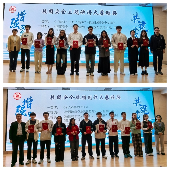 11月28日晚,大赛决赛及颁奖典礼在大学城校区文化活动中心青春报告厅举行。大赛共决出主题演讲比赛、视频创作比赛一、二、三等及优秀奖,大赛优秀组织奖等奖项。作为我校校园安全宣传的主要载体,校园安全知识暨创意设计大赛结合社会发展、学校实际及师生反响情况,不断创新开展形式,丰富开展内容。活动在引发共鸣的同时,切实增强学生安全素养与防护能力,以比赛育人、以活动育人,引导广大师生将更加关注校园安全问题,并发动师生更加积极主动参与到校园安全建设中来,共同维护和谐有序的校园环境,为更高水平安全文明校园建设贡献力量。