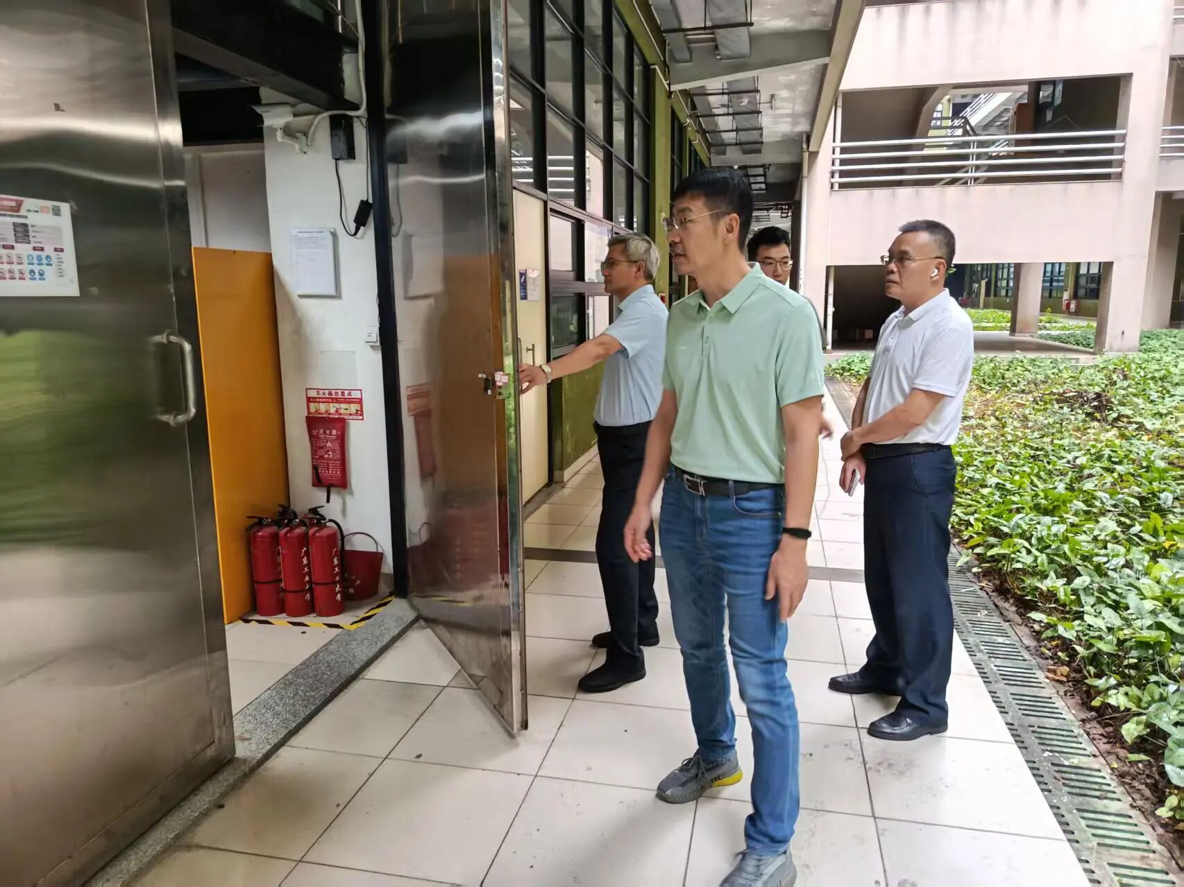 清明节假期将至,为切实做好节日期间校园安全稳定工作,有效防范各类安全事故发生,确保广大师生度过一个平安、祥和的假期,4月3日下午,学校党委副书记陈卓武带队在大学城校区开展校园安全检查工作,学校党委保卫部、保卫处工作人员陪同检查。